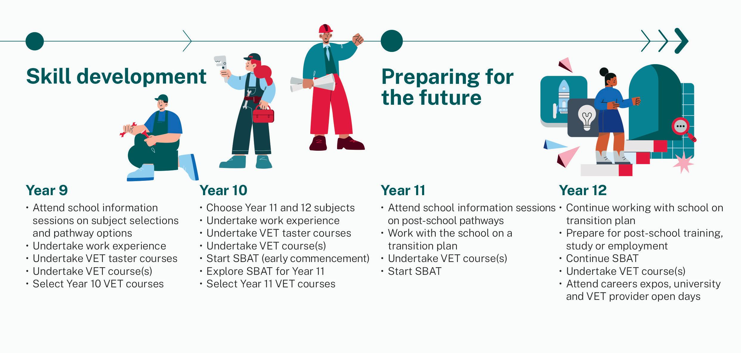 Stage 6 (Years 11–12): these courses build deeper industry skills and knowledge and help with the successful transition from school to employment, further training, or even university study.