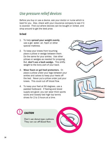 Use pressure relief devices Before you buy or use a device, ask your doctor or nurse which is best for you. Also, check with your insurance company to see if it is covered. Find out where devices can be bought or rented, and shop around to get the best price.