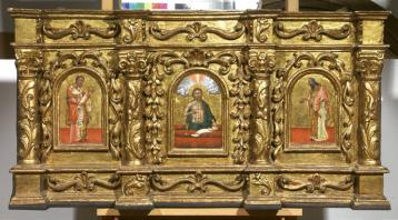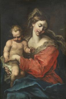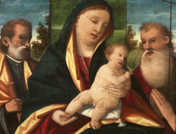 MADONNA WITH CHILD AND SAINT JOHN THE BAPTISTE oil on canvas, cm 127x96,5