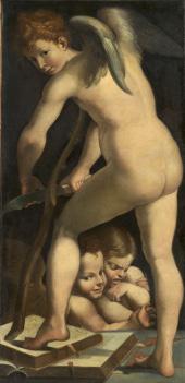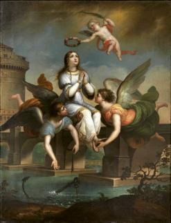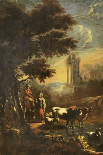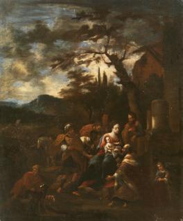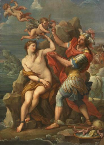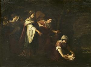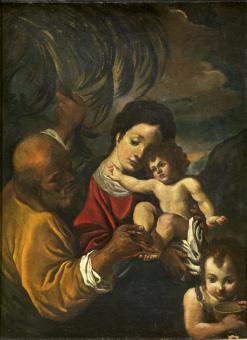 Il nostro dipinto replica, in controparte e con alcune varianti all’opera eseguita nel 1622 da Giovanni Francesco Barbieri detto il Guercino (1599-1666) oggi conservata presso la Pinacoteca Vaticana di Roma.