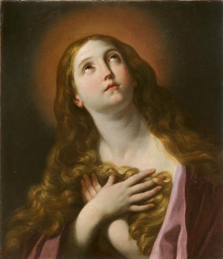 MARY MAGDALENE WITH TWO ANGELS oil on onyx, cm 30x47,5
