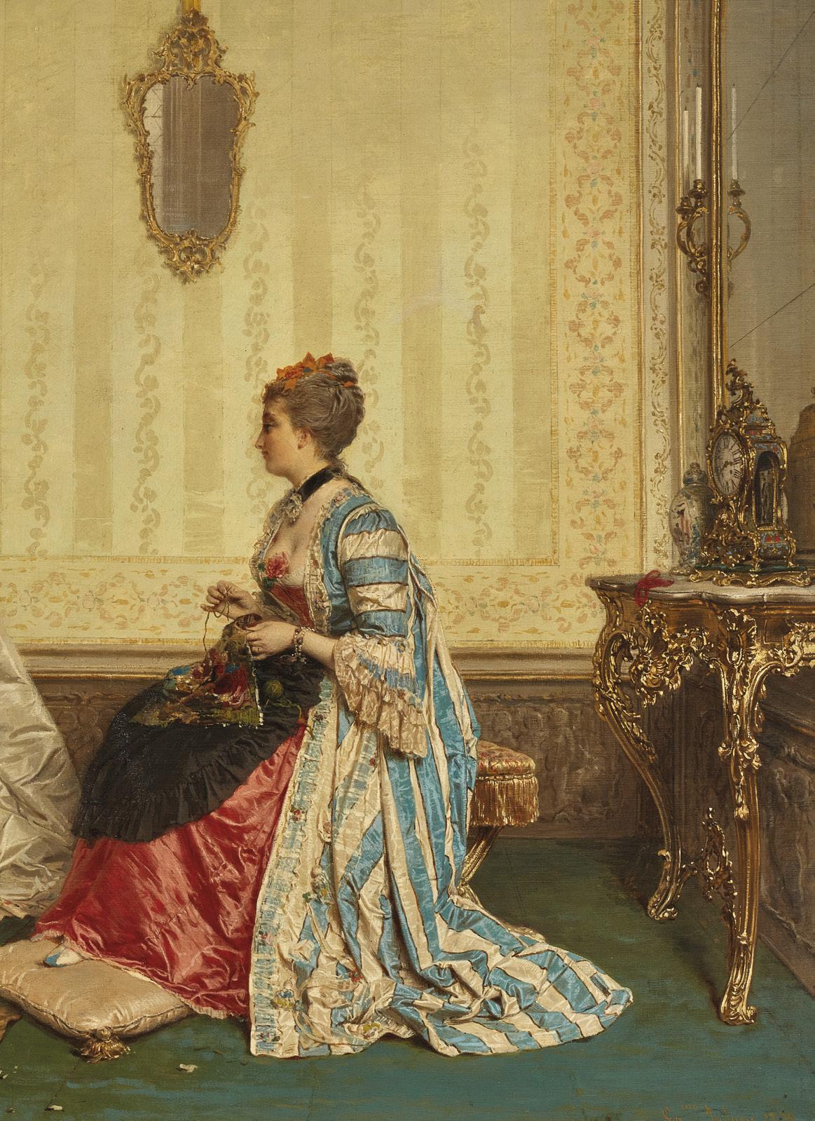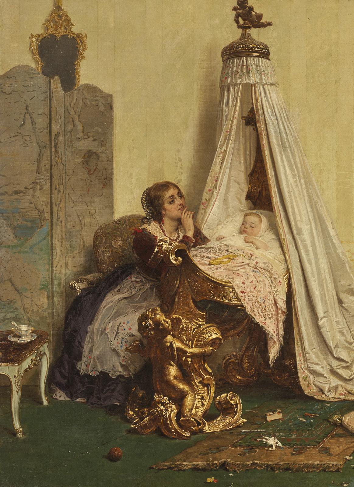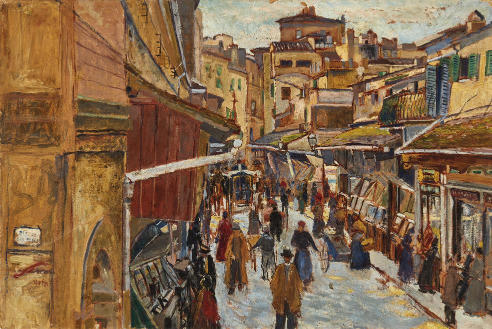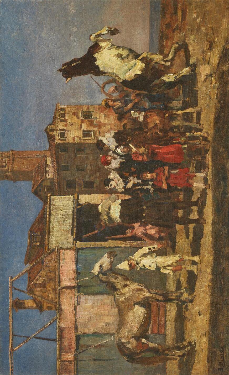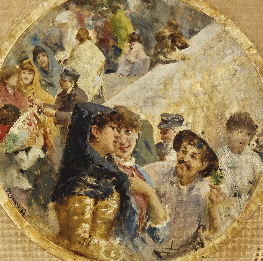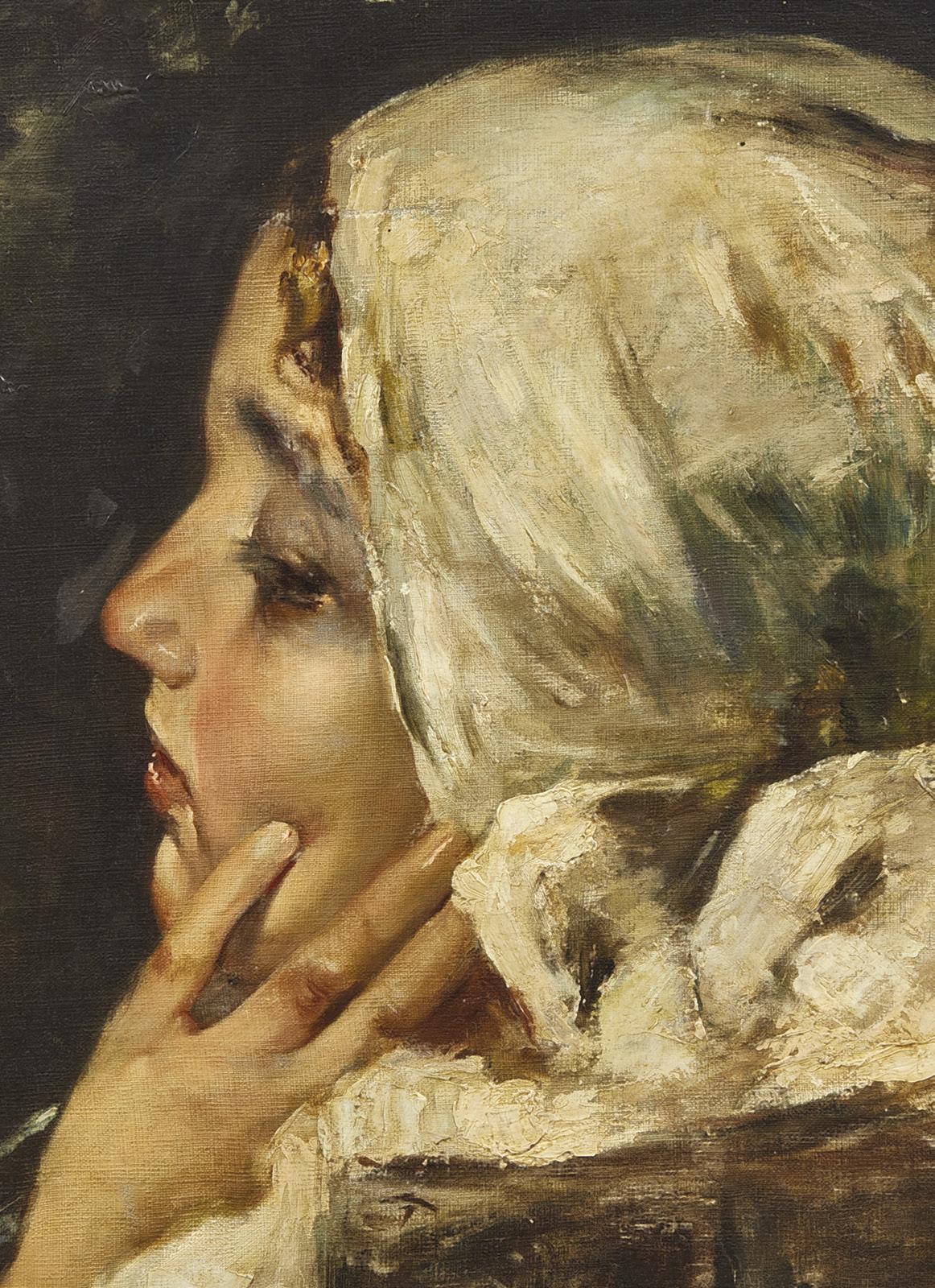 Per quanto riguarda l’attribuzione del bel dipinto che presentiamo in asta, che non è firmato, esiste da parte dei proprietari un riferimento verbale all’artista Tito Conti come recita anche una targhetta in metallo apposta sulla cornice dell’ opera.