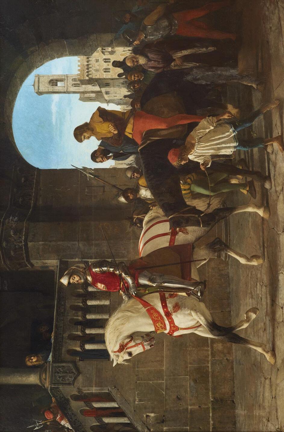 A questa circostanza si ricollega il nostro dipinto, che rappresenta Gualtieri di Brienne mentre conduce al patibolo le prime due persone accusate di aver tramato contro il Comune di Firenze durante la guerra contro Pisa.