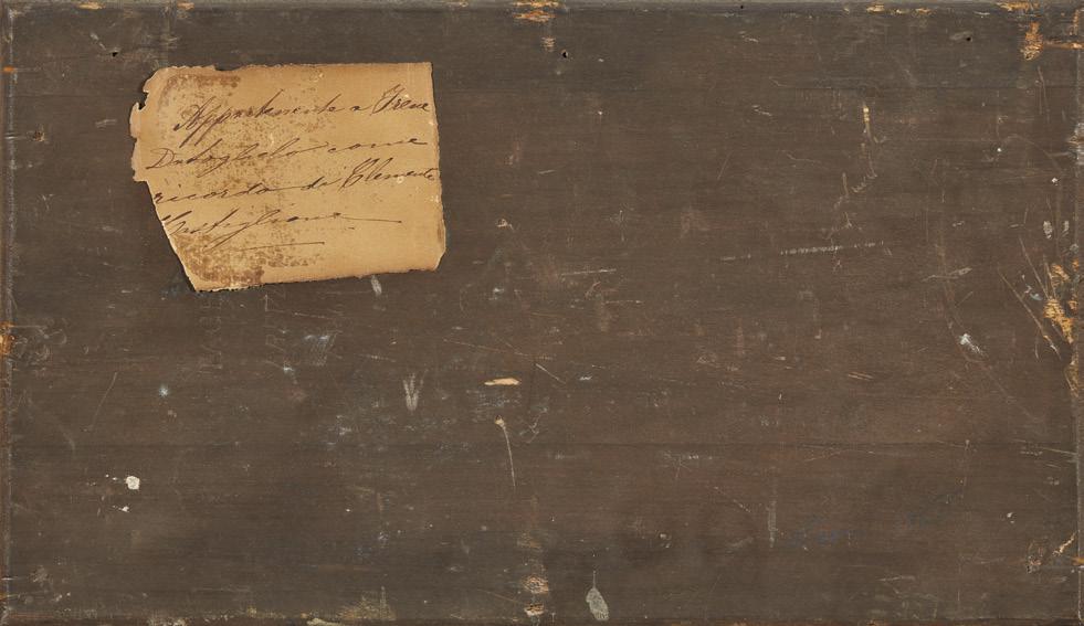 oil on panel, 23.5x40 cm, unframed signed and dated “1866” lower right on the reverse: label “Appartenente a Irene / Daboglielo come / ricordo di Clemente / Castiglione”