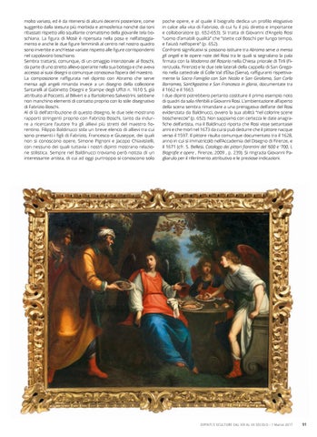 molto variato, ed è da ritenersi di alcuni decenni posteriore, come suggerito dalla stesura più morbida e atmosferica nonché dai toni ribassati rispetto allo squillante cromatismo della giovanile tela boschiana. La figura di Mosè è ripensata nella posa e nell’atteggiamento e anche le due figure femminili al centro nel nostro quadro sono invertite e anch’esse variate rispetto alle figure corrispondenti nel capolavoro boschiano. Sembra trattarsi, comunque, di un omaggio intenzionale al Boschi, da parte di uno stretto allievo operante nella sua bottega e che aveva accesso ai suoi disegni o comunque conosceva l’opera del maestro. La composizione raffigurata nel dipinto con Abramo che serve mensa agli angeli rimanda invece a un disegno della collezione Santarelli al Gabinetto Disegni e Stampe degli Uffizi n. 1610 S, già attribuito al Poccetti, al Bilivert e a Bartolomeo Salvestrini, sebbene non manchino elementi di contatto proprio con lo stile disegnativo di Fabrizio Boschi. Al di là dell’attribuzione di questo disegno, le due tele mostrano rapporti stringenti proprio con Fabrizio Boschi, tanto da indurre a ricercare l’autore fra gli allievi più stretti del maestro fiorentino. Filippo Baldinucci stila un breve elenco di allievi tra cui sono presenti i figli di Fabrizio, Francesco e Giuseppe, dei quali non si conoscono opere, Simone Pignoni e Jacopo Chiavistelli, con nessuno dei quali tuttavia i nostri dipinti mostrano relazione stilistica. Sempre nel Baldinucci troviamo però notizia di un interessante artista, di cui ad oggi purtroppo si conoscono solo