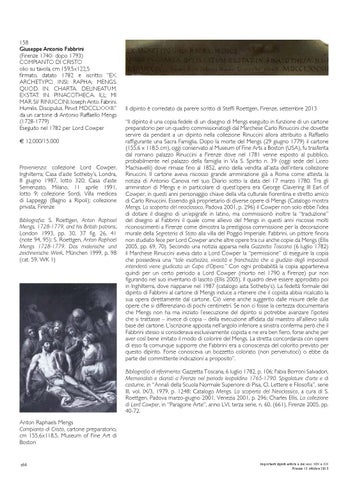 Provenienza: collezione Lord Cowper, Inghilterra; Casa d’aste Sotheby’s, Londra, 8 giugno 1987, lotto 320; Casa d’aste Semenzato, Milano, 11 aprile 1991, lotto 9; collezione Sordi, Villa medicea di Lappeggi (Bagno a Ripoli); collezione privata, Firenze Bibliografia: S. Roettgen, Anton Raphael Mengs, 1728-1779, and his British patrons, London 1993, pp. 30, 37 fig. 26, 41 (note 94, 95); S. Roettgen, Anton Raphael Mengs 1728-1779. Das malerische und zeichnerische Werk, München 1999, p. 98 (cat. 59, WK 1)