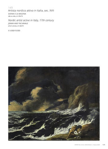 149 Artista nordico attivo in Italia, sec. XVII GIONA E LA BALENA olio su tela, cm 60x74