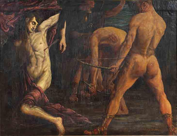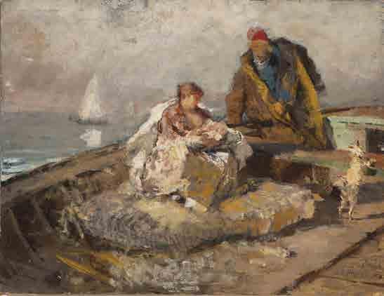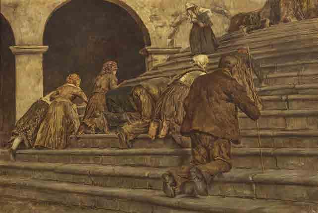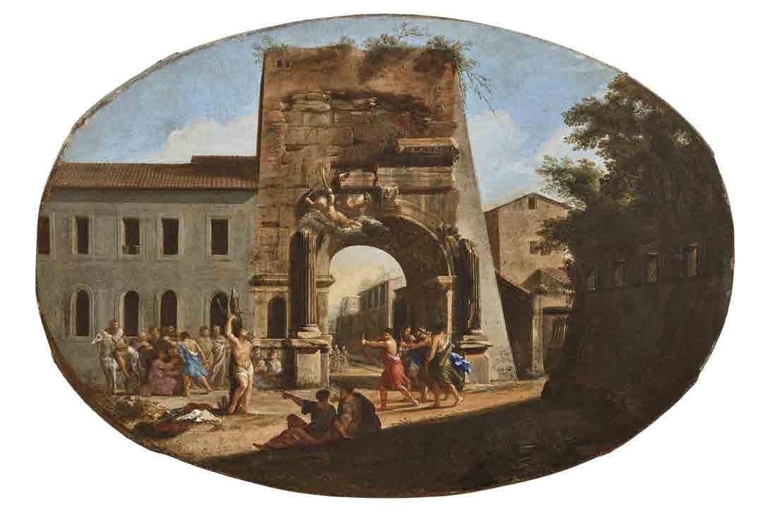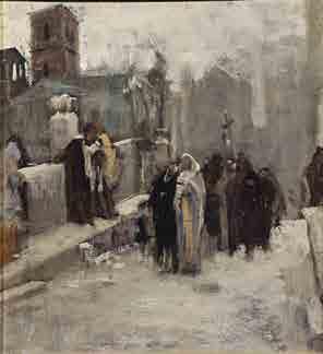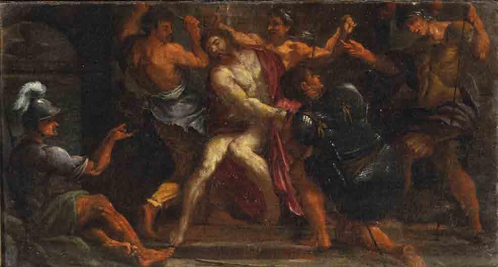 THE CROWNING WITH THORNS oil on canvas, 23.5x43.5 cm
