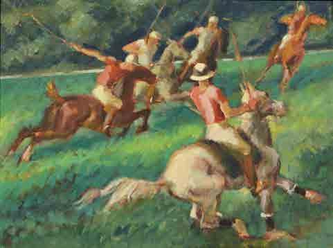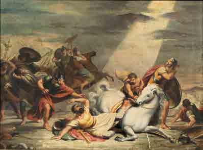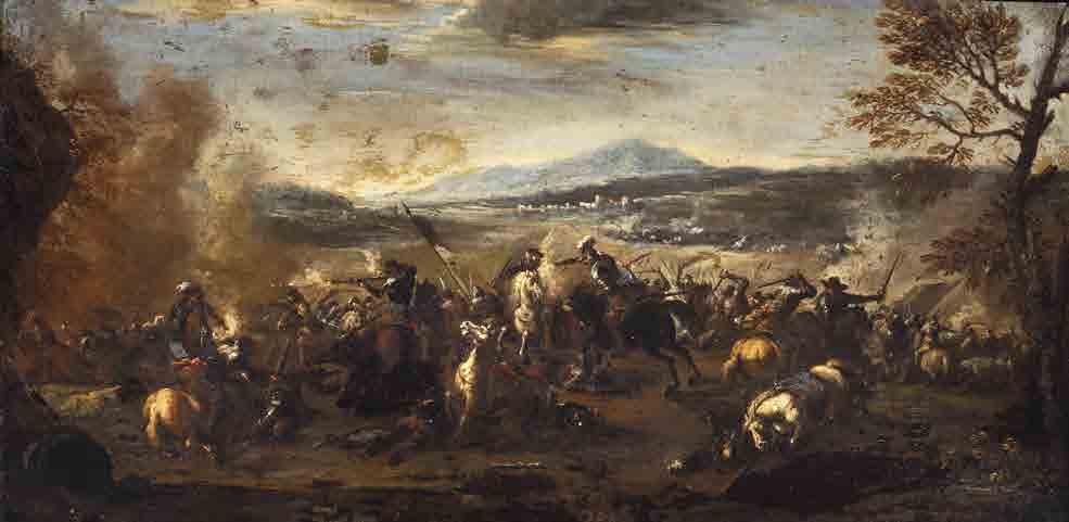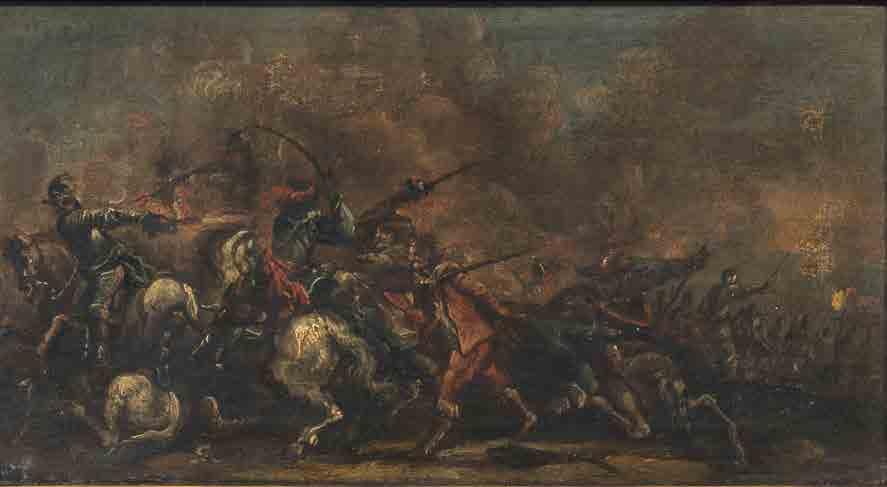 BATTLE SCENE oil on canvas, 21.5x39 cm