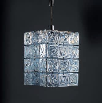 «LS120» CEILING LAMP, BLUE GLASS LAMPSHADE