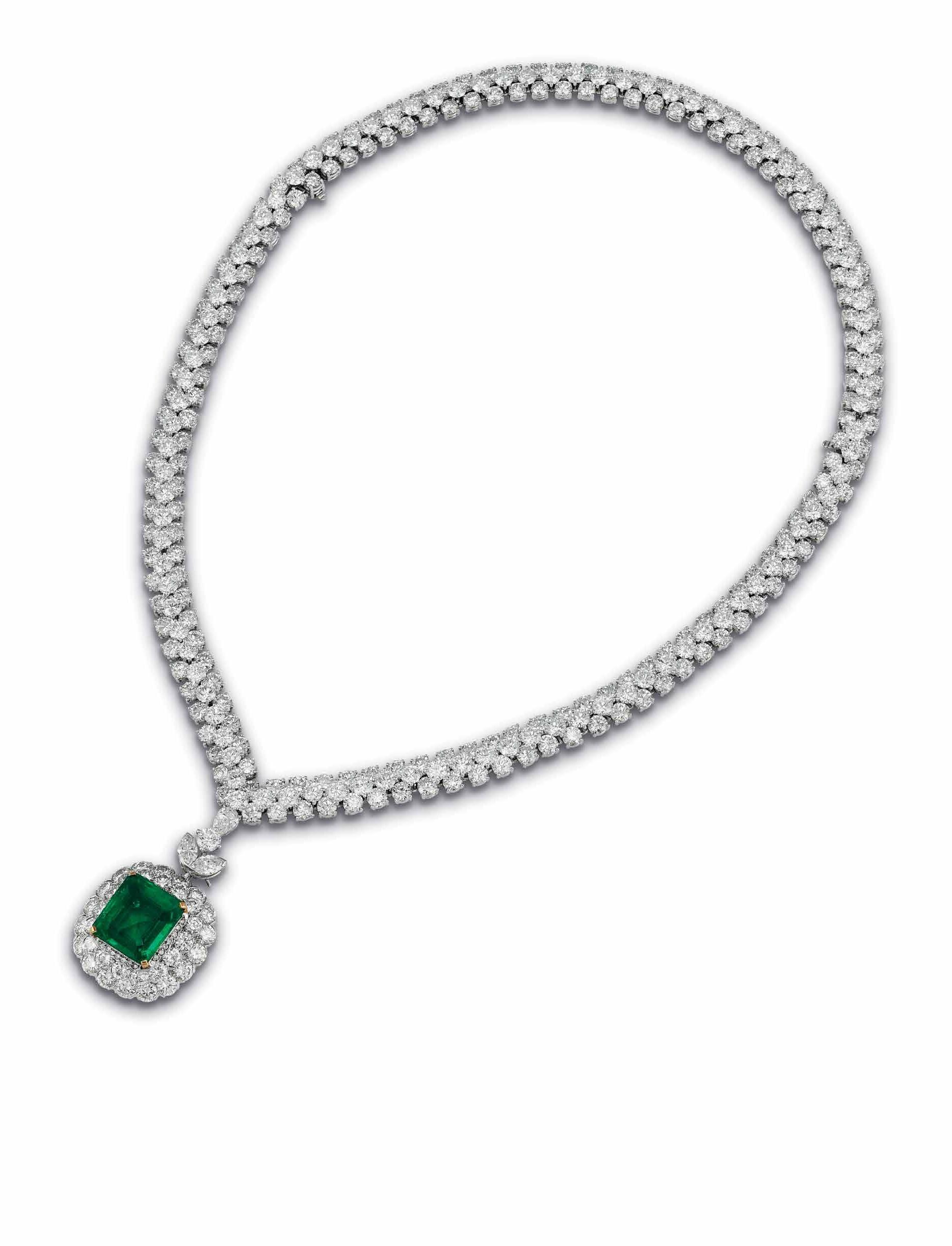 in oro giallo 18kt, impreziosito da smeraldi taglio cabochon per ct 20 circa, coralli taglio cabochon e diamanti taglio brillante per ct 4 circa, firmato Bulgari, punzoni 750 del fabbricante, lungh. cm 18, gr. 63. Corredato di memorandum di acquisto del 30/06/1976