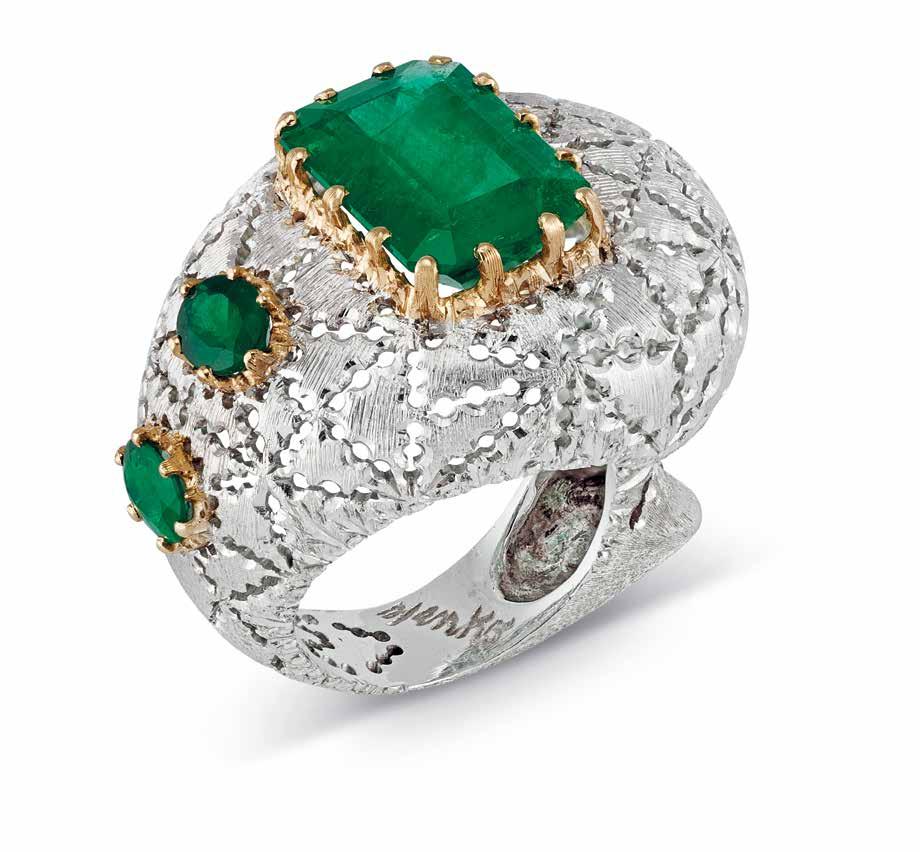 BULGARI ANELLO CONTRARIE CON SMERALDI PIETRE SEMIPREZIOSE E DIAMANTI