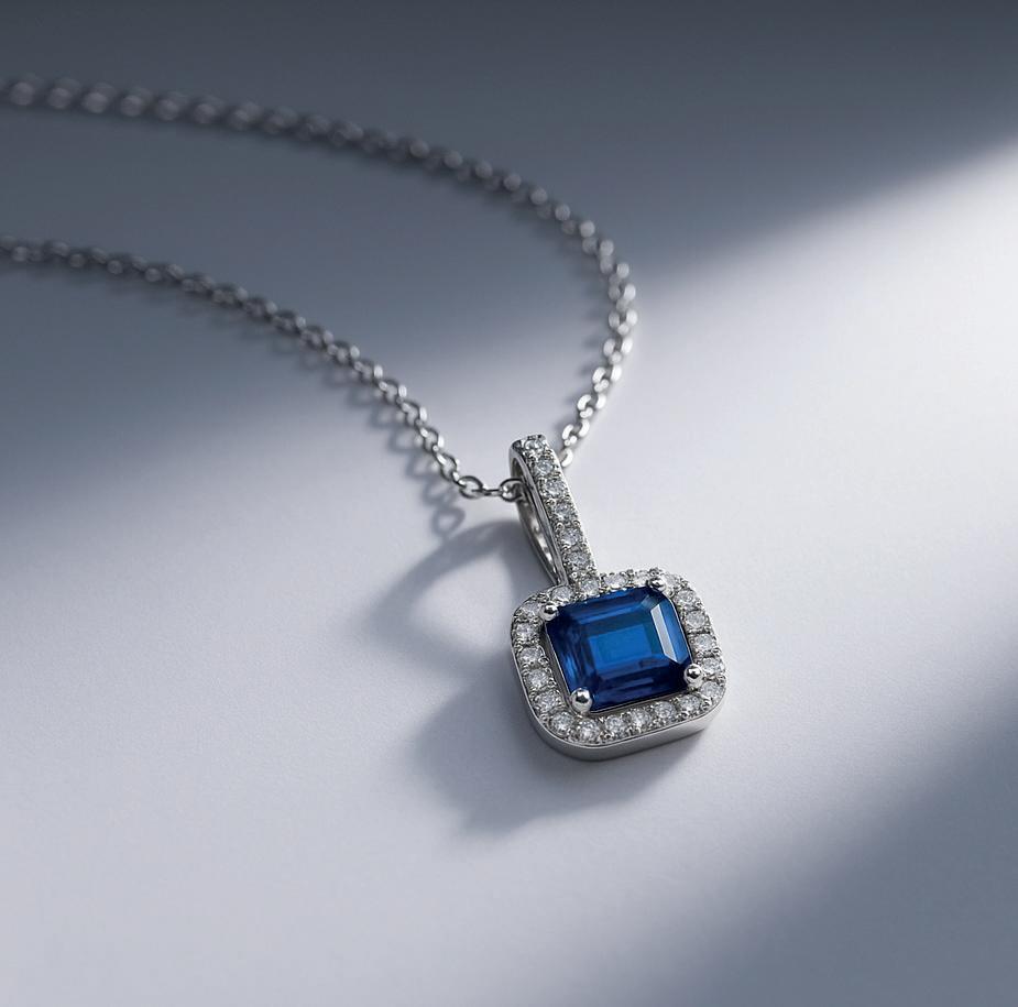 COLLAR ZAFIRO RECTANGULAR CON HALO $139.000