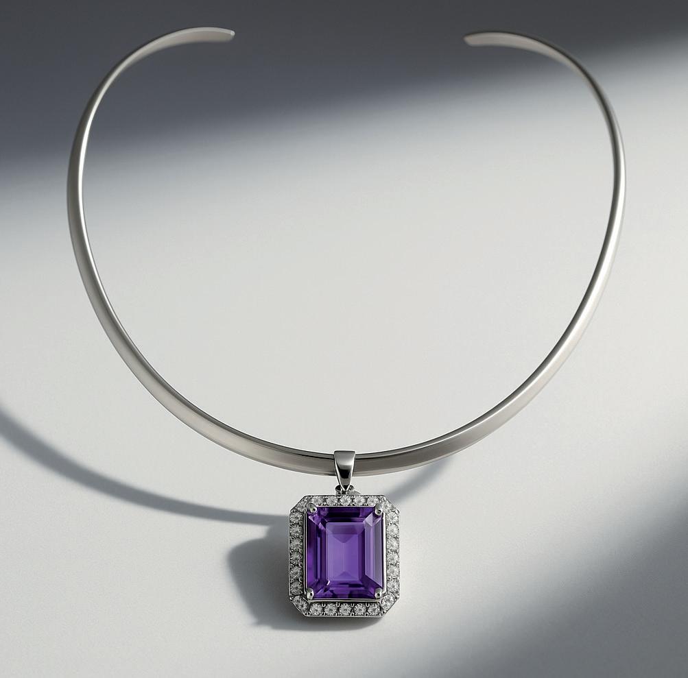 COLLAR MEDALLÓN RECTANGULAR AMATISTA NATURAL $2.920.000