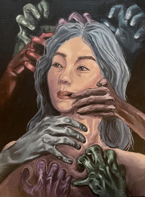 Artwork Blurb: I really wanted to emphasize the uncertainty of the woman. I further immerse the viewer to this ideology by deliberately leaving the girl in black in white to add a sense of enigma.