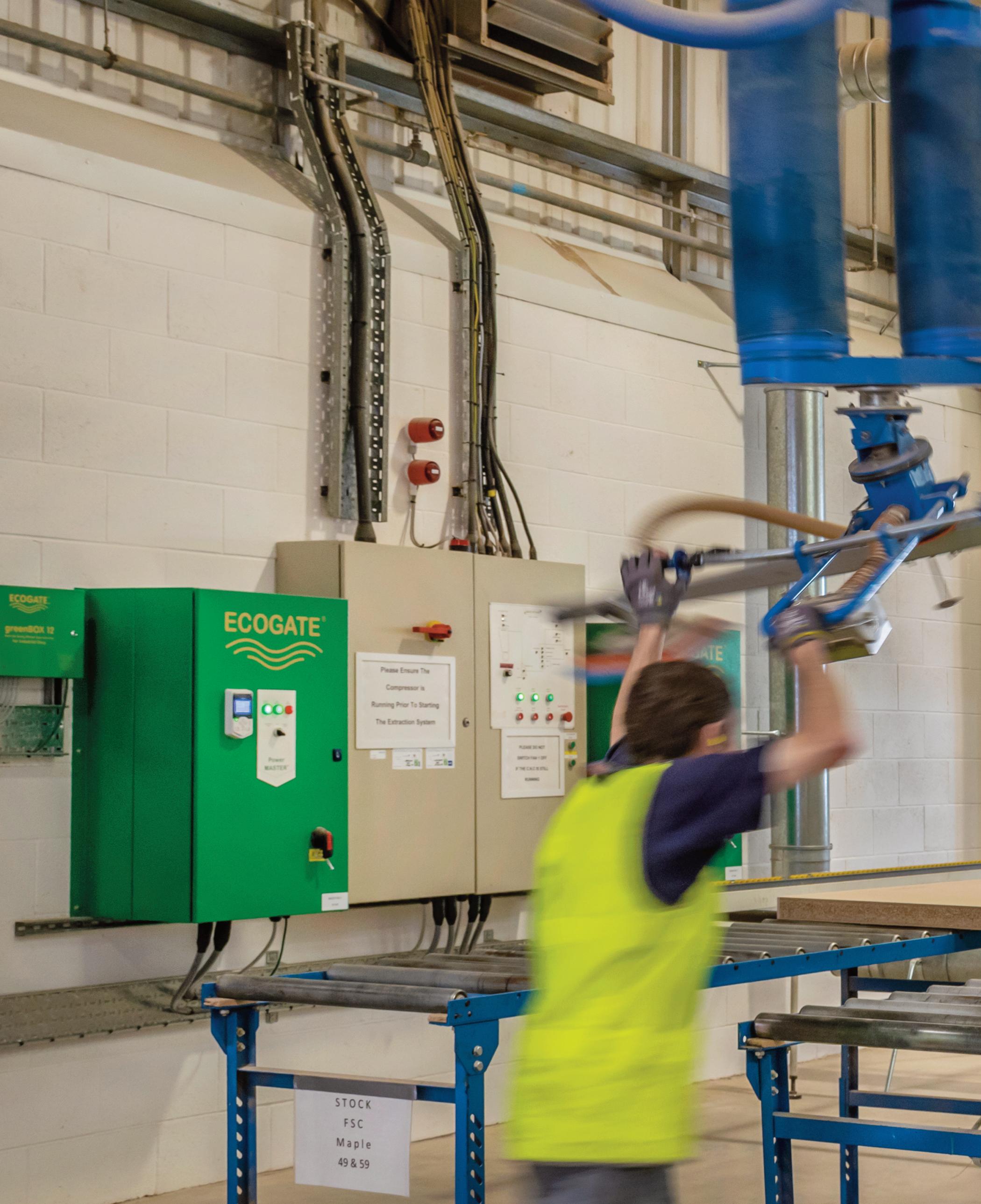 With ECOGATE, the extraction system responds in real-time to variations in machine use. When a production machine is switched on, the greenBOX Controller opens a motorised damper to provide extraction for that particular machine.