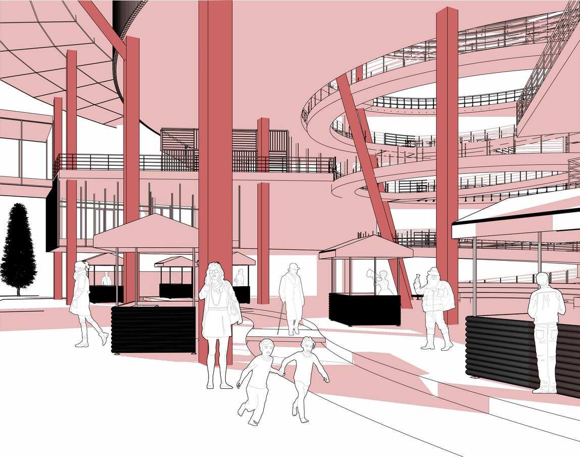 The community is dispersed into distinct areas where various user groups engage in diverse cultural and recreational activities, yet the prevailing fragmentation imparts a sense of segregation and distance to the overall environment.
