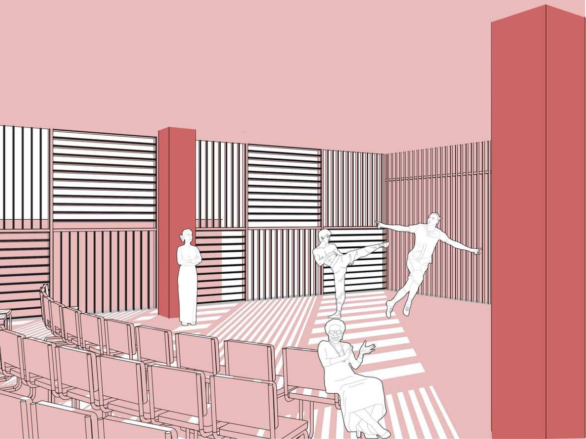 To capitalize on this potential, the project proposes the creation of a performing arts center featuring an amphitheater. This venue would provide a platform for traditional dance performances, enabling people from different racial backgrounds to learn and experience each other's cultural dances. The center would also include spaces for artists to showcase their work, engage with other artists, and share ideas. Additionally, dedicated areas would be available for street musicians to perform, whether in enclosed or open settings, allowing them to express their talents freely.