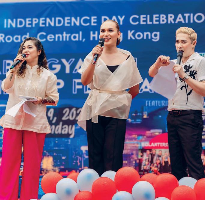Live variety shows are another muchloved spectacle among Hong Kong’s OFW community. Every Sunday, shows take place across the city: community group anniversaries, singing competitions, fashion shows, corporate-sponsored celebrity performances, Philippine Consulate events, amongst many others. A big part of keeping these programmes running smoothly are the emcees and presenters, seamlessly guiding the audience through the show, introducing each segment, guest, or award.