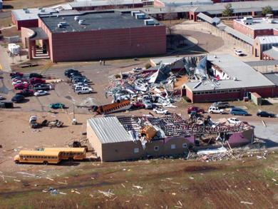 ■ Every school should be inspected and tornado shelter areas designated by a registered engineer or architect. Rooms with exterior walls should never be used as tornado shelters.
