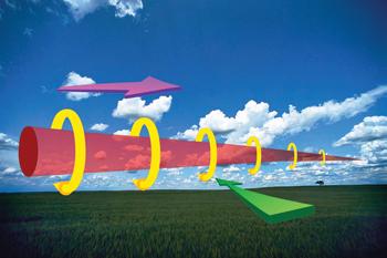 Before thunderstorms develop, winds change direction and increase in speed with altitude. This creates an invisible, horizontal spinning effect in the lower atmosphere.