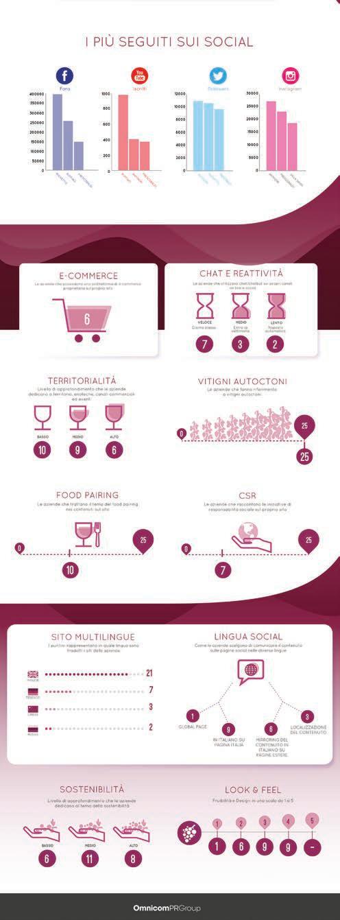 Questi in sintesi i risultati della sesta edizione della ricerca condotta da Omnicom PR Group Italia, società di consulenza strategica in comunicazione attiva con oltre 80 uffici in 30 Paesi, che ha analizzato la presenza e le attività online delle prime 25 aziende vinicole italiane per fatturato secondo l’indagine Mediobanca 2019, confrontando i risultati con i trend rilevati dal 2014.