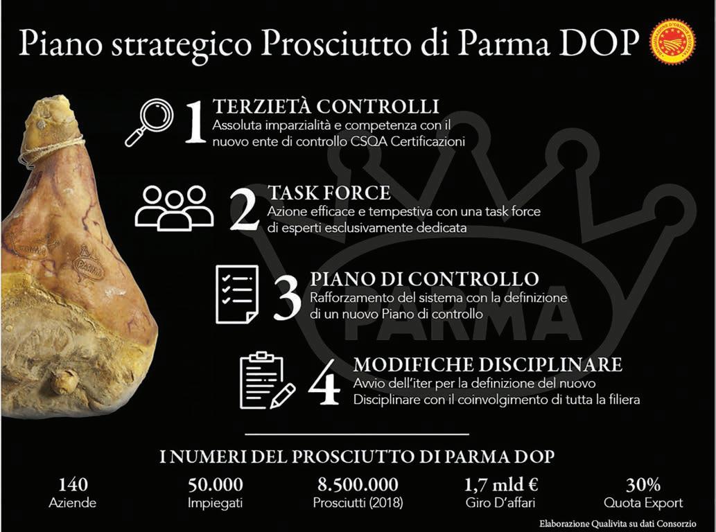 Terzietà, controlli più efficaci, distintività del prodotto e maggiori garanzie per i consumatori, sono questi i pilastri fondamentali su cui poggia il piano di rilancio del Prosciutto di Parma Dop che guarda al futuro con ottimismo e con azioni concrete per continuare a sostenere l’intera filiera suinicola nazionale e dare lavoro ad oltre 50.000 persone.