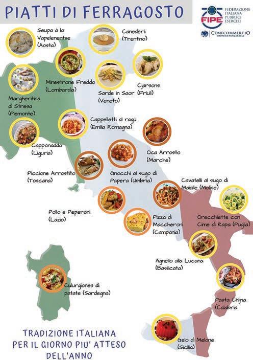 Fipe, Federazione Italiana Pubblici Esercizi, ha creato una mappatura di quelle che sono le ricette regionali dei piatti più amati per la giornata che in Italia simboleggia l’estaqte, i cui segreti sono custoditi da mamme, nonne e ristoratori - ogni regione, da nord a sud, ha il suo piatto di ferragosto da gustare in compagnia.