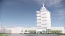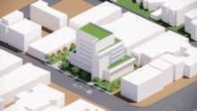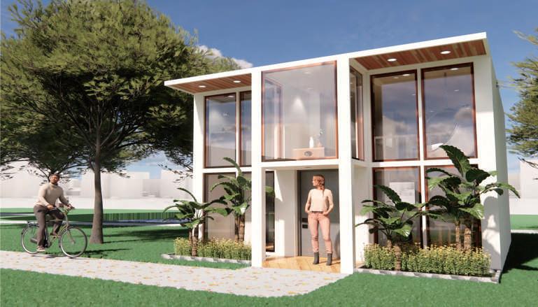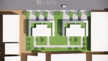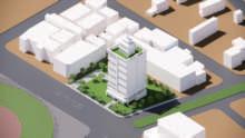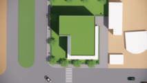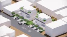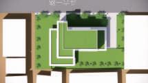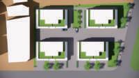 跟據當地都市計畫書圖與本國 法規檢討其建蔽率及容積率、 樓高限制等,留設綠帶開放空 間與消防通道,並於每戶留設 人行道與車庫通道,其中根據 地點特性設置區域分類為商業 中軸帶、寧靜過渡區、住宅寧 靜區,共8種建築量體作為提 供建設方案。