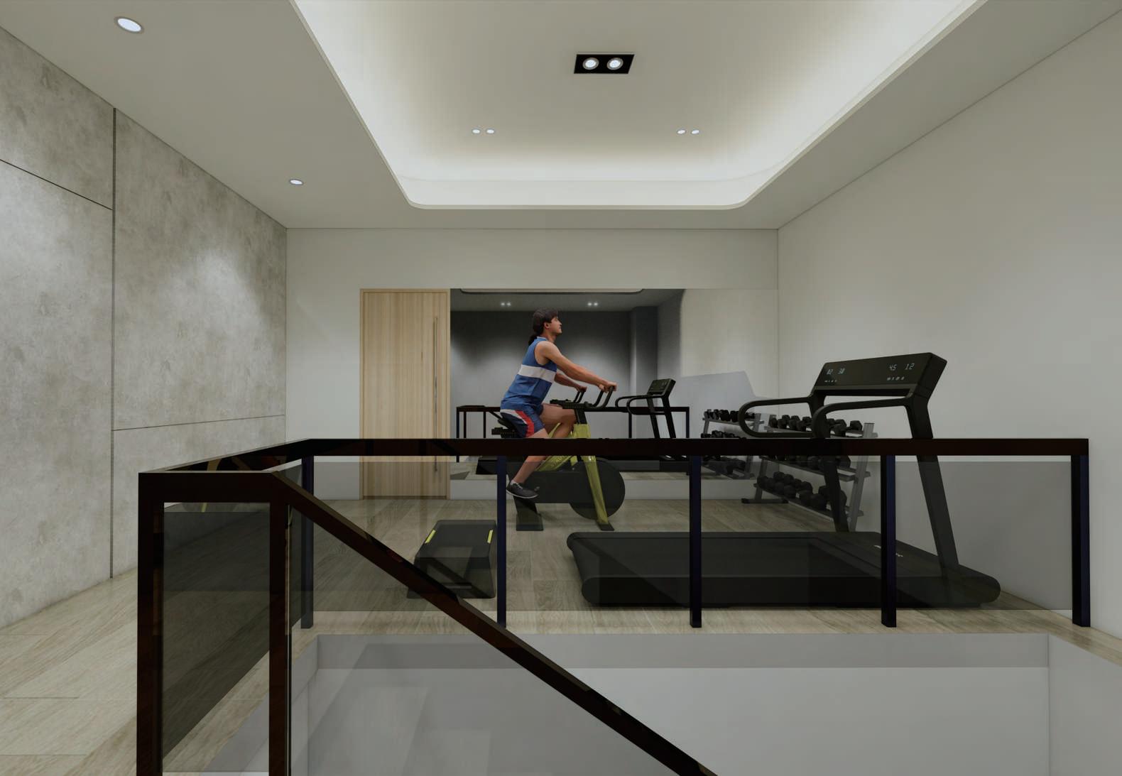 二樓空間以私領域居多,並以 健身運動空間作為公私區域的 兩者過渡。