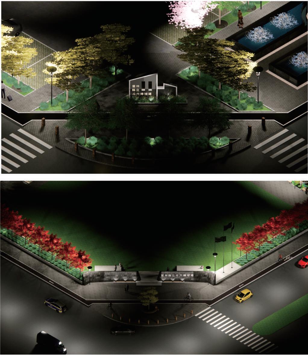 因此將斗六棒球場 主要入口進行開放 空間整塑,重新配 置棒球場周圍之公 共設施,包含:休憩 綠帶、活動集合區 、市集區、汽機車 停車場、噴水池、 人行道、自行車道 、兒童遊戲區、兒 童接送等候區,兩 處廣場入口意象。