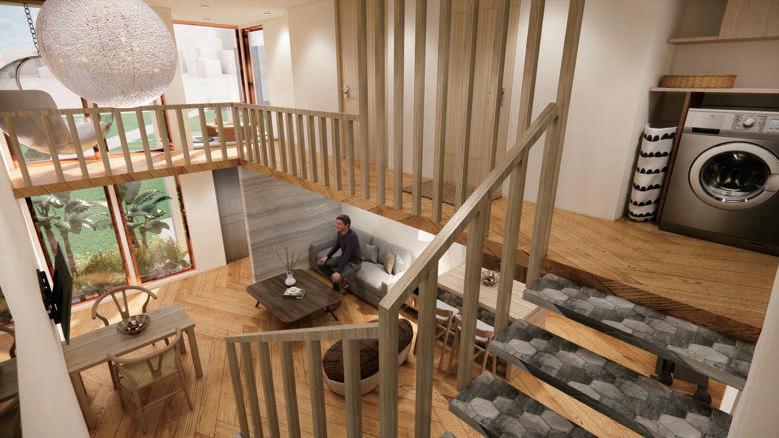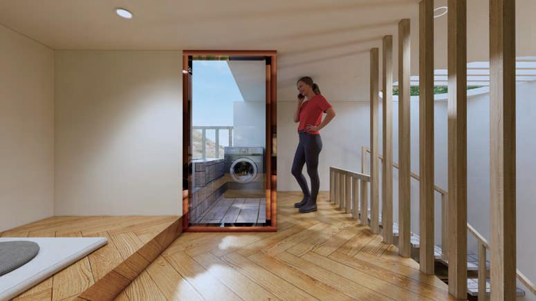 2樓家事空間作為衣物清潔之 工作區域,同時也是晾衣空間 設置於2樓處以便家庭三口使 用。