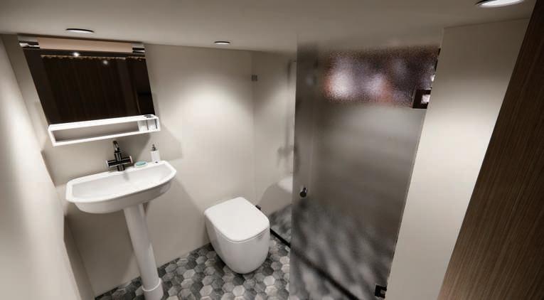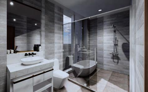 主臥室一側以更衣間及衛浴空 間作為配置,提供兩側櫃體發 揮收納及展示的功能;衛浴空 間採用乾濕分離與景觀浴缸規 劃。