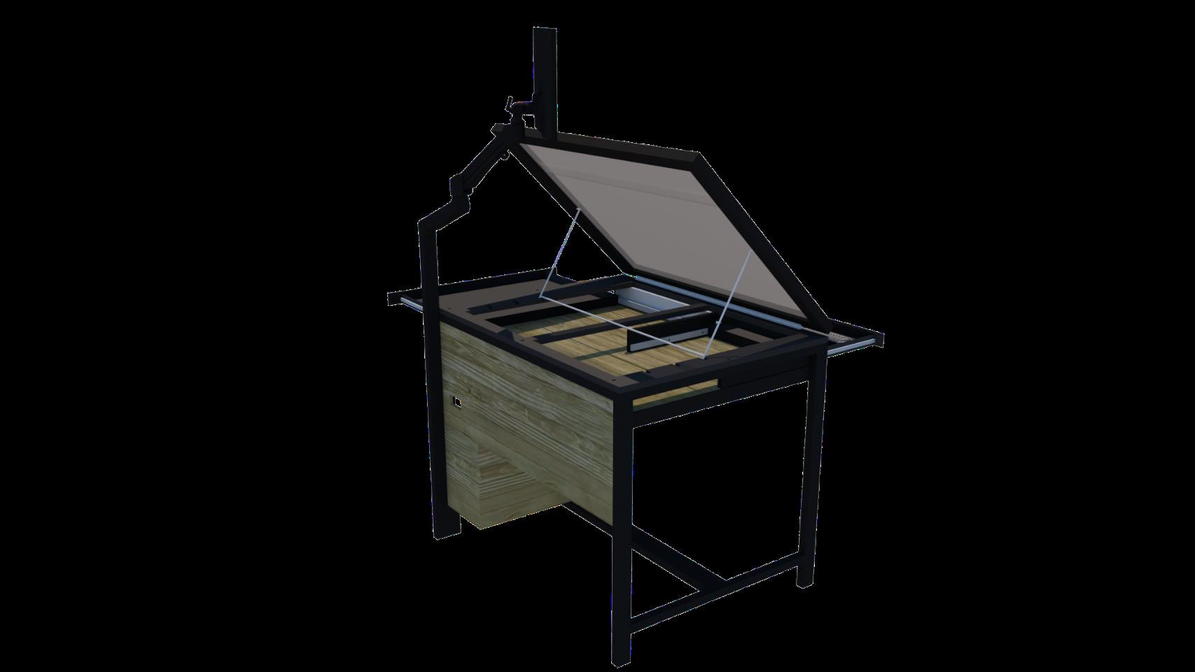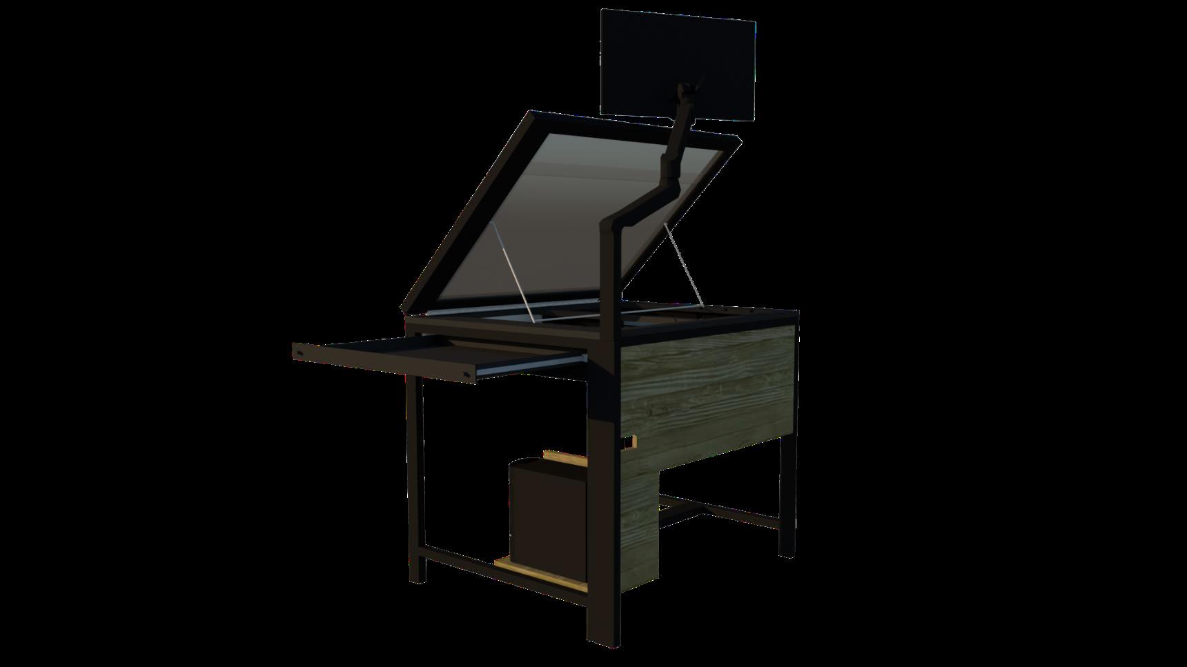 • STEEL FRAME FOR SCREEN ARM, TO MOVE MONITOR OVER THE DRAFTING SURFACE.