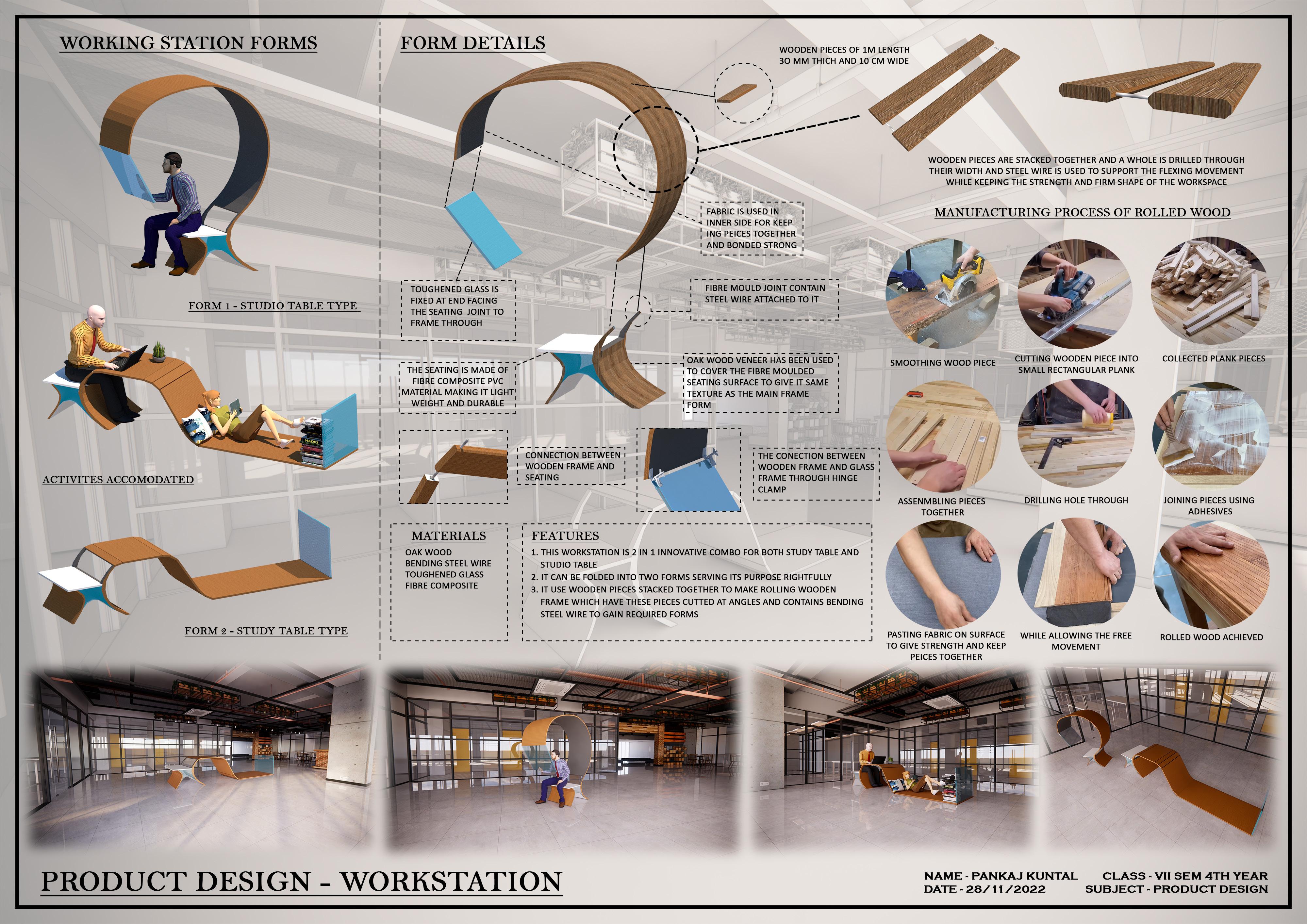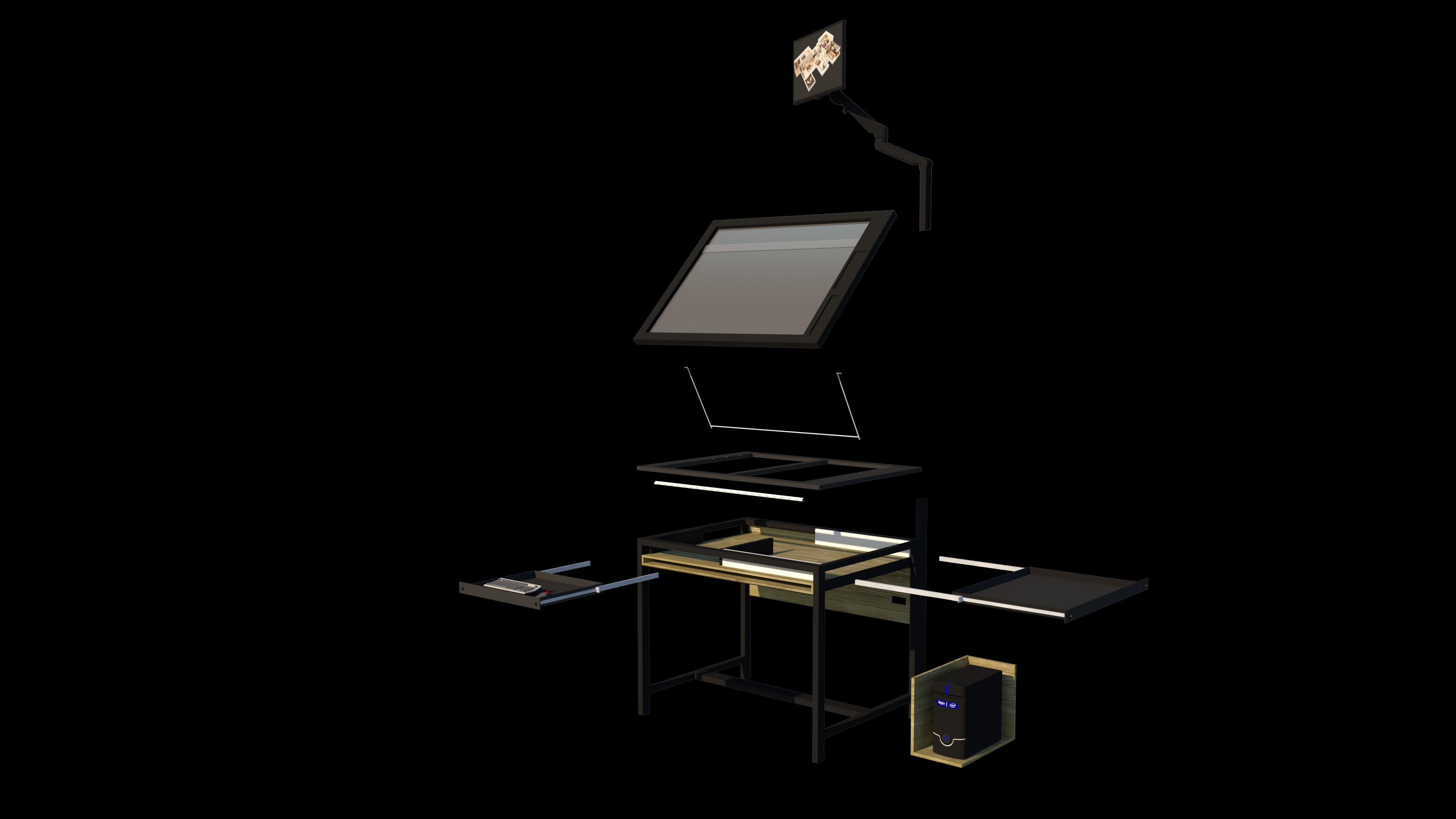 • CONCEPT IS TO CREATE FLOOR SPACE FOR BOTH. MANUAL DRAFTING TABLE AND COMPUTER TABLE A COMBINED COMPUTER AIDED DESIGN' CAN HELP IMPROVE WORK EFFICIENCY IN ONE DESIGN.