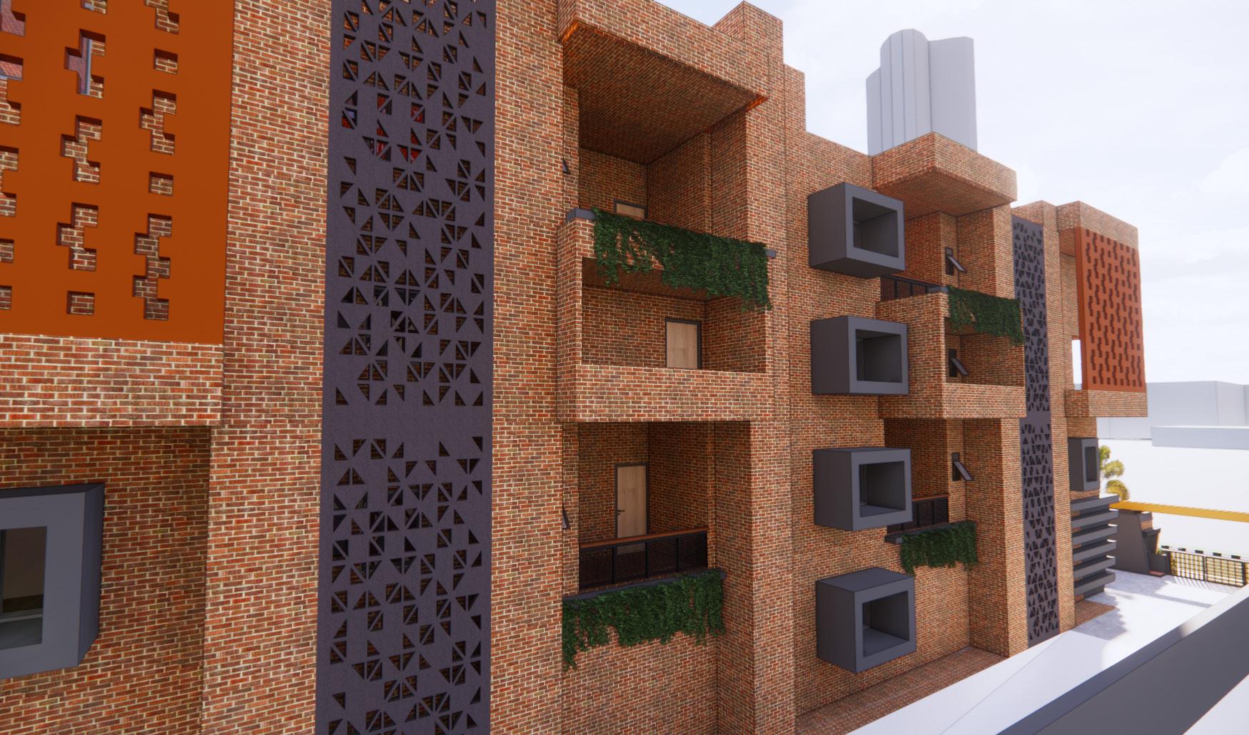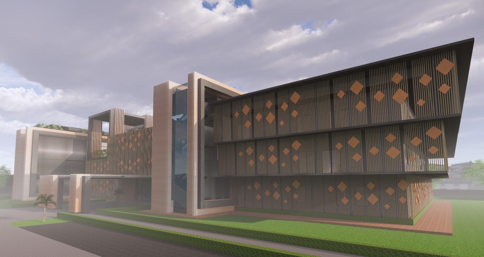 Its campus would have a mix of cultural and institutional component including residential wings for the students and limited staff. The Institution would serve 300 students, 100 each in the schools ot music, dance and drama- providing accommodation to all. Performing spaces in the form of an auditorium, an ampitheatre, informal spaces would be provided, for making it more active for the public.