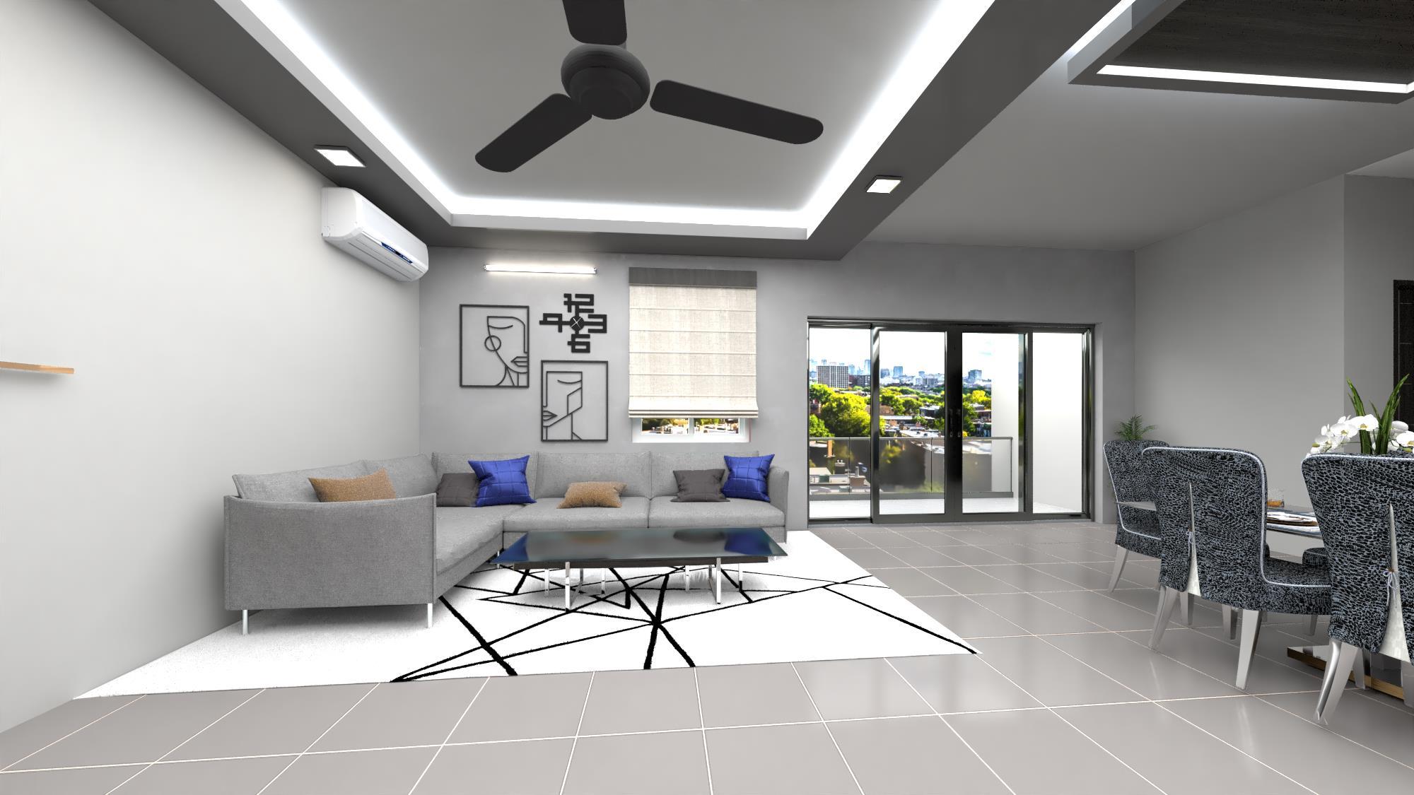 • Blue colour is used on blinds, dining cabinet laminate and drawers.