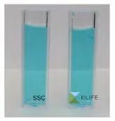 Tato změna je známa jako superhydrofóbní efekt v důsledku fotoindukce. Tento efekt definuje fotokatalytickou aktivitu materiálu na modifikování úhlu smáčení malou kapkou umístěnou na povrchu jako funkci času V provedeném testu se měří počáteční úhel smáčení, a poté znovu po 48 hodinách Podle pravidel tohoto testu jsou testovány dva vzorky Krion® K·Life 1100 a jejich výsledky jsou porovnány s testem vzorku vysoce samočisticího materiálu a vzorku rovného, nefotokatalytického skla