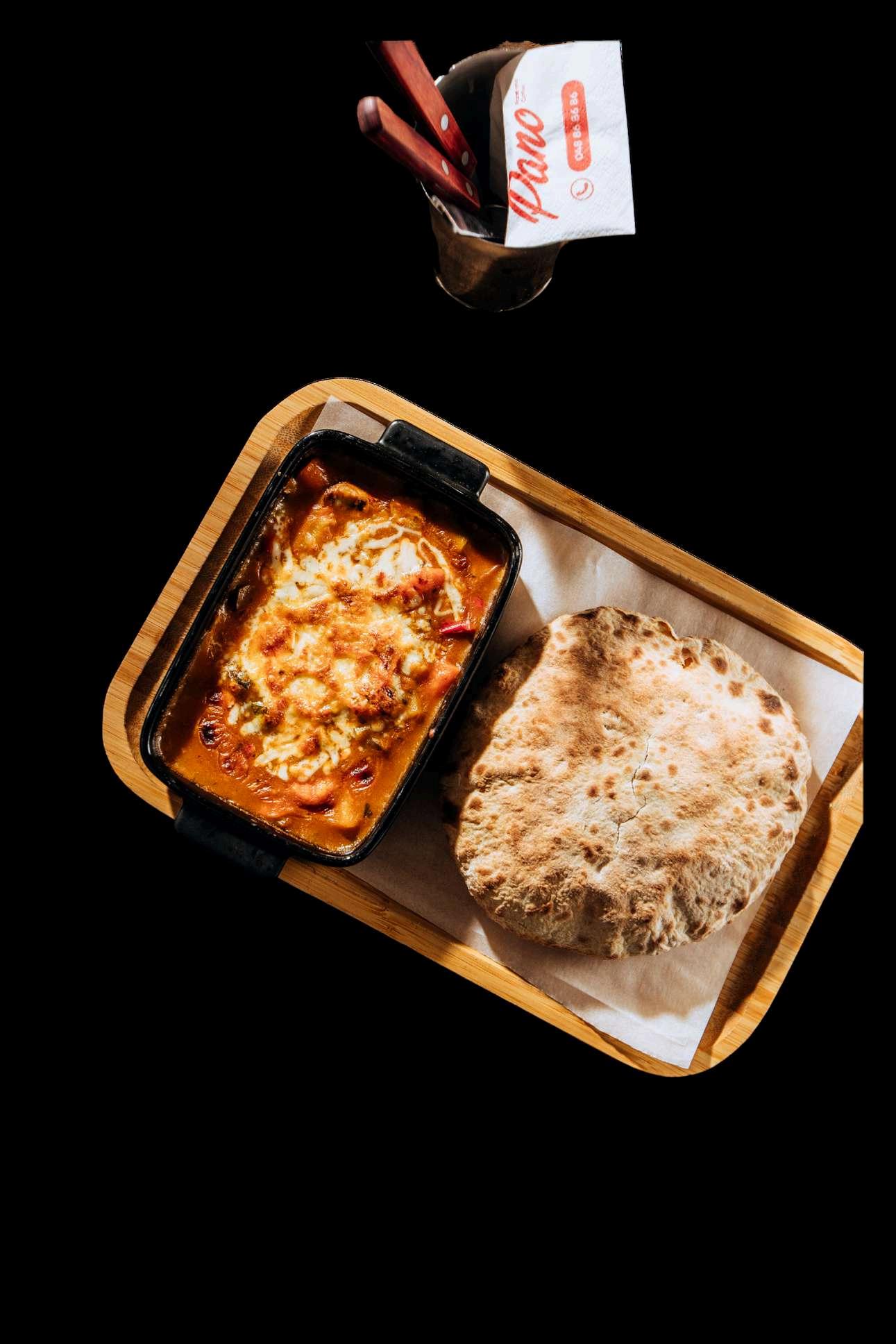 (Groundbeef,stewedtomatosaucewithvariousvegetables,cheese,olive)