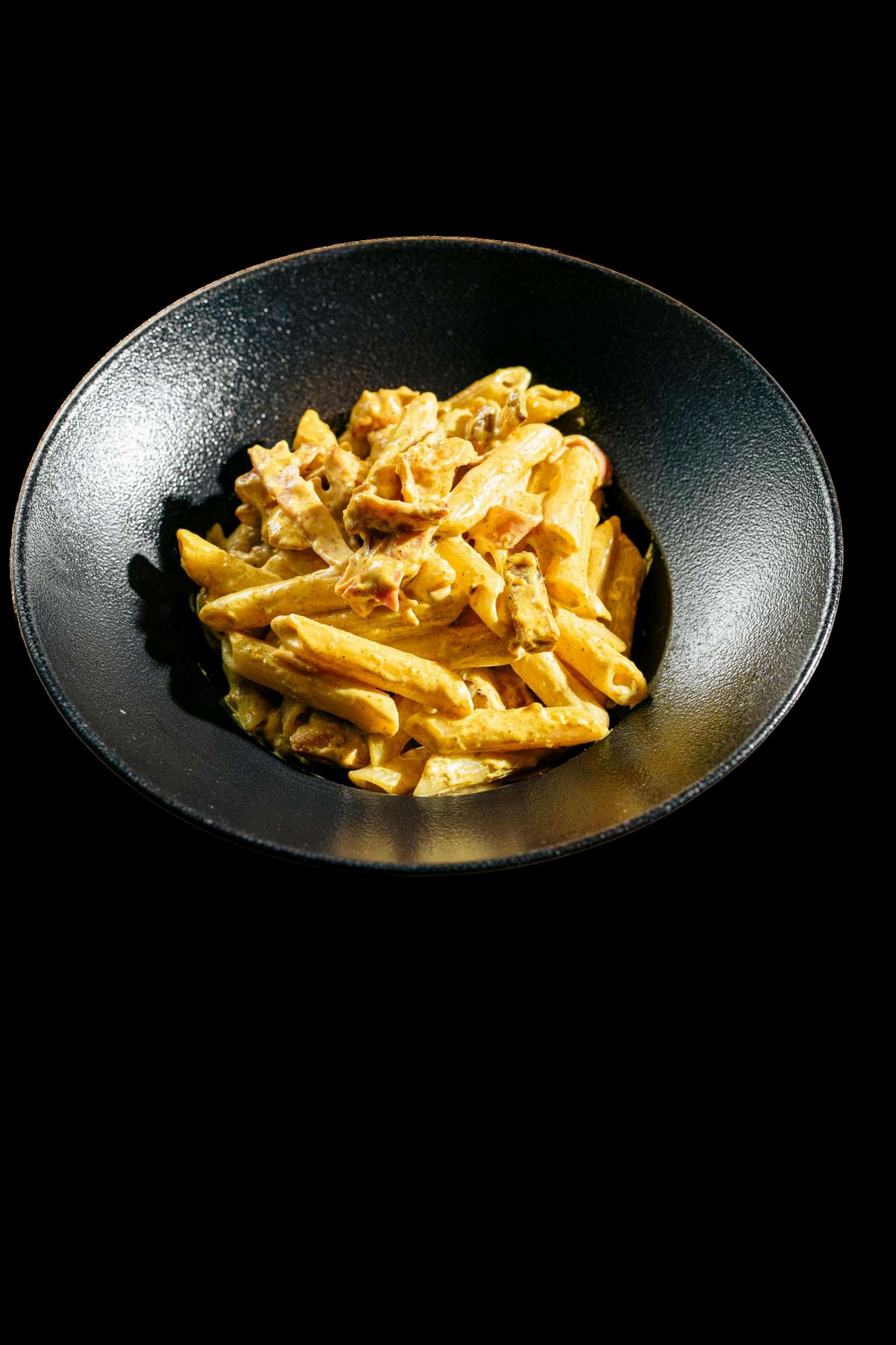(Chicken,mushrooms,bacon,cookingcream,curryspices,cheese,olives)