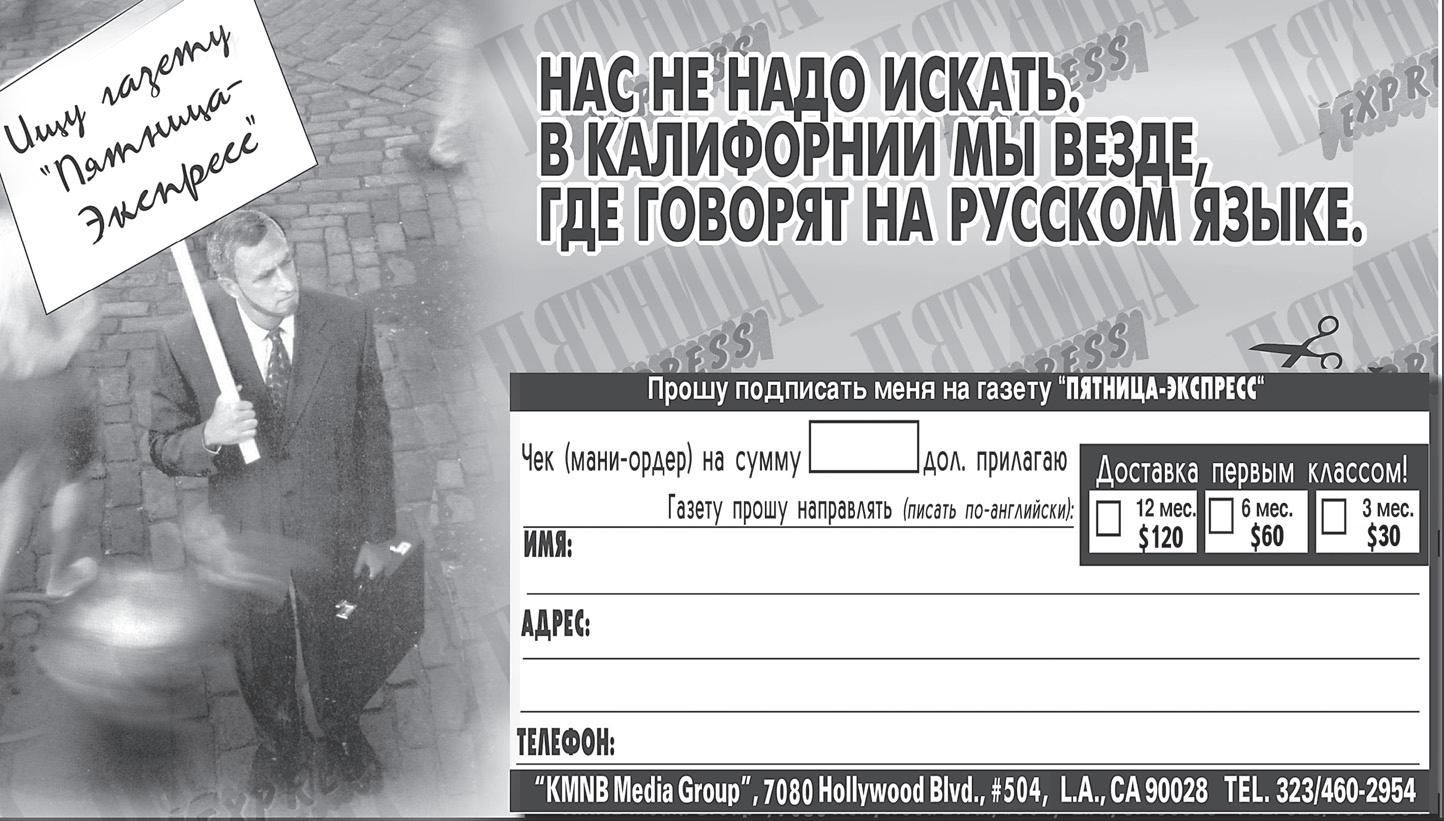 The Los Angeles Times Sunday issue is part of the Friday-Express subscription. Additional bonus days may also be delivered and distributed as part of your subscription Е-mail: PmgNews@SBCglobal.net © President & CEO, Publisher Chief Editor Accounting Mànager Graphic Design Circulation & Distribution Редàêöиÿ не вñтóïàет в ïереïиñêó ñ ÷итàтелÿìи, не реöенçирóет и не воçврàùàет ïриñлàннûе рóêоïиñи Îтветñтвенноñтü çà доñтоверноñтü инôорìàöии в реêлàìнûх ïóáлиêàöиÿх неñóт реêлàìодàтели. Published