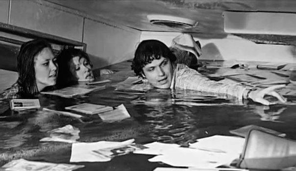 недели. Когда конструкцию опустили в воду, все каюты открылись – двери сорвались с петель и всплыли. Пришлось прикрутить всё шурупами. Глубинные трюки, как и все остальные опасные сцены, «бесстрашный стармех» Николай Еременко исполнял сам. Его эффектный «проплыв»