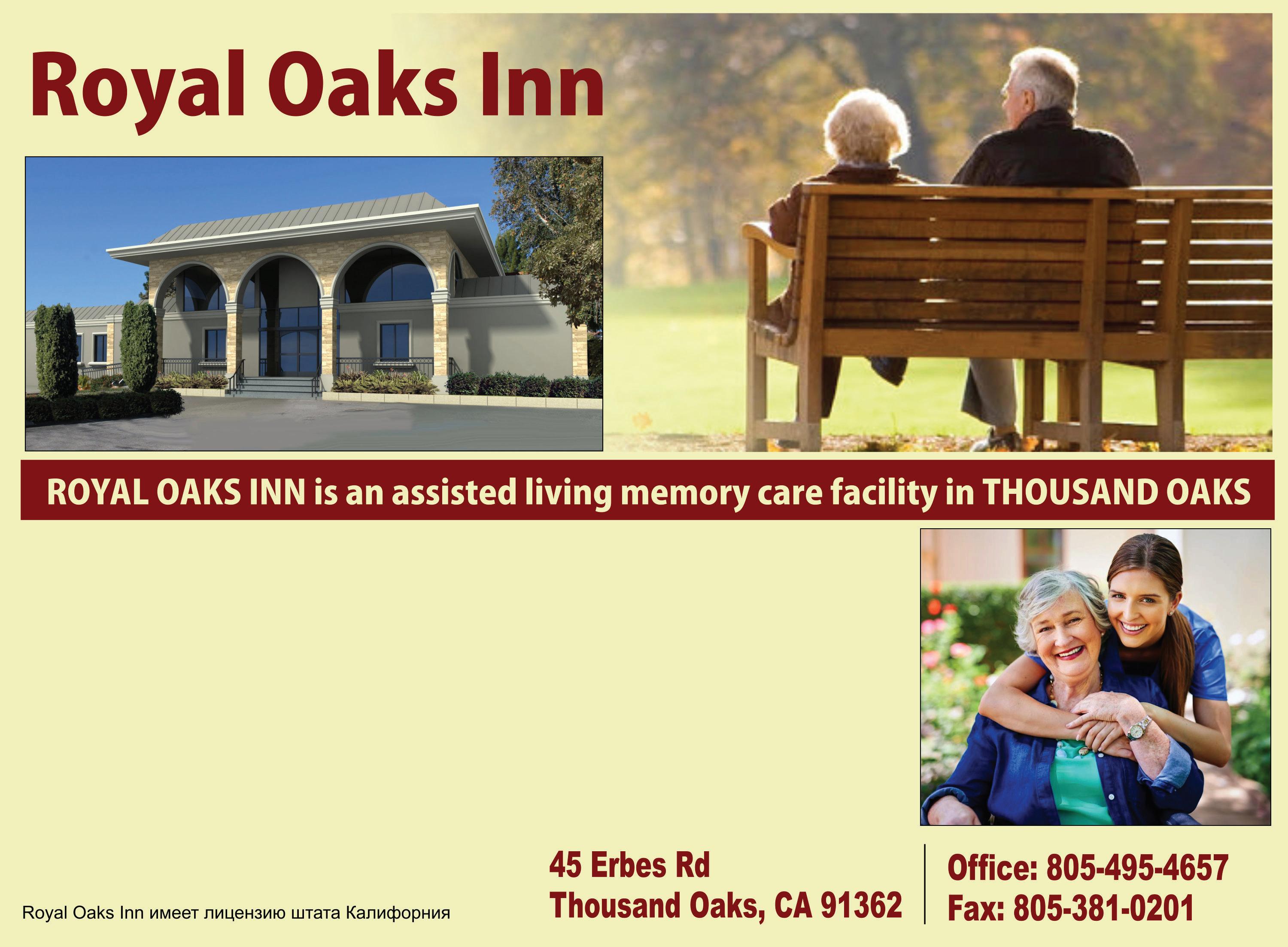 nанорама panorama media group B15 almanac panorama #39 (2164), September 28 - October 4, 2022 www.panorama-e.com tel: (323)463-7224 fax: (323)460-2980 В Royal Oaks Inn мы создаем для пожилых людей теплую, дружелюбную и полноценную жизненную атмосферу. Royal Oaks Inn специализируется по уходу за людьми с болезнью Альцхаймера и деменцией. предоставляемые услуги: • программа психического здоровья • 12–16-часовой уход • помогаем одеваться • Контроль за приемом лекарств • приготовление еды и обслуживание Любовь и поддержка - это не только наша работа - это наша привилегия.