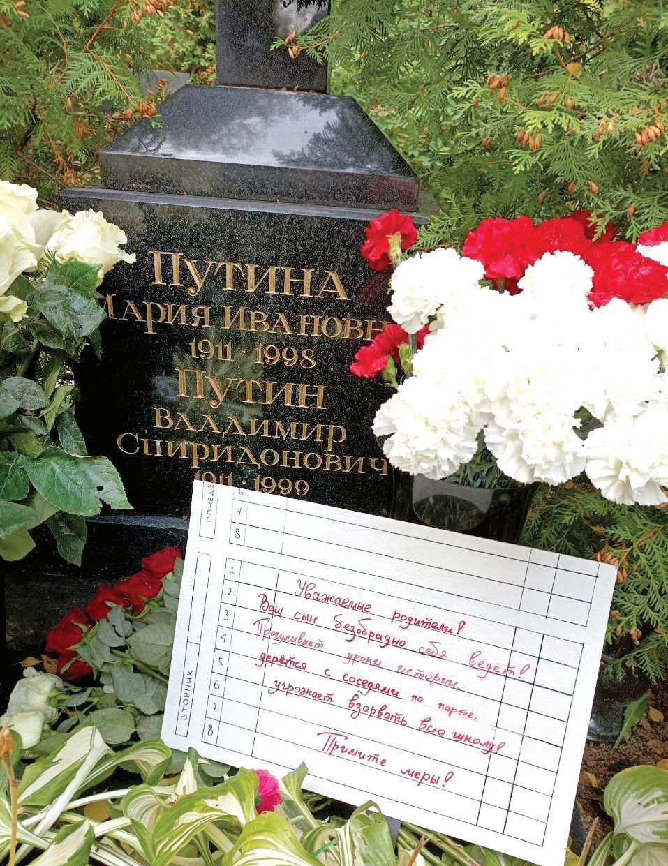 Призыв в записке, оставленной на кладбище к покойным родителям Путина, принять меры, естественно, останется без ответа – он продолжа ет себя безобразно вести. Многие за дают вопрос – когда уже принесут за писку на его могилу…