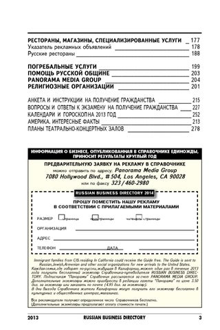 Immigrant families from CIS residing In California could receive the Guide free. The Guide is sent to Russian, Jewish, Armenian and other social organizations for new arrivals to the United States. Каждая семья, где говорят по-русски, живущая в Калифорнии, может один раз в течение 2013 года получить бесплатный экземпляр Справочника-путеводителя RUSSIAN BUSINESS DIRECTORY. Подписчикам “Панорамы” Справочник рассылается за счет PANORAMA MEDIA GROUP. Дополнительные экземпляры можно приобрести в редакции газеты “Панорама” по цене 3.50 дол. за экземпляр или заказать по почте (4.95 дол. за экземпляр). В дни выхода Справочника жители Калифорнии могут получить его экземпляр бесплатно в культурных и общественных центрах, магазинах. Все рекламодатели получают определенное число Справочников бесплатно. (Дополнительные экземпляры предполагают оплату стоимости печати.)