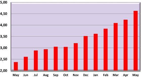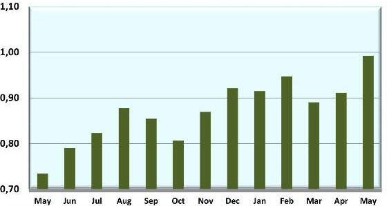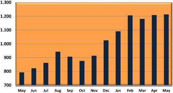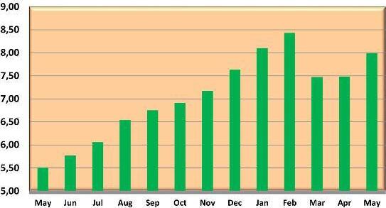 A continuación se brindan las cotizaciones promedios de los meses de Mayo de 2021 y de 2020 para los metales preciosos (oro, plata) y los metales base (cobre, plomo, zinc, estaño), expresados en dólares americanos por onza y libra, respectivamente