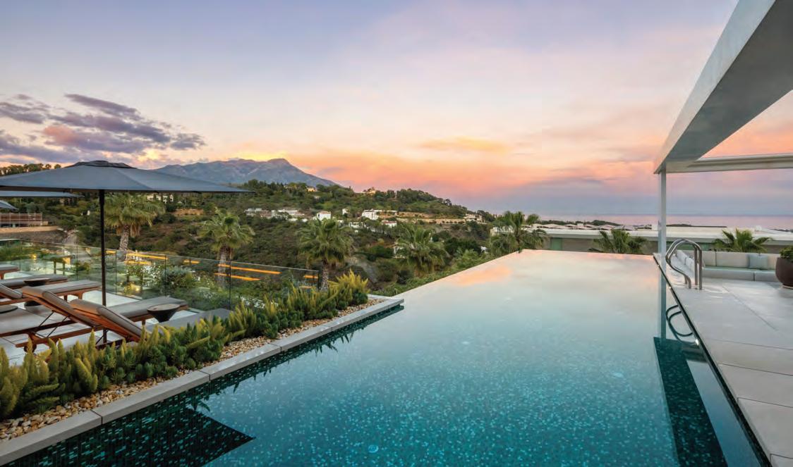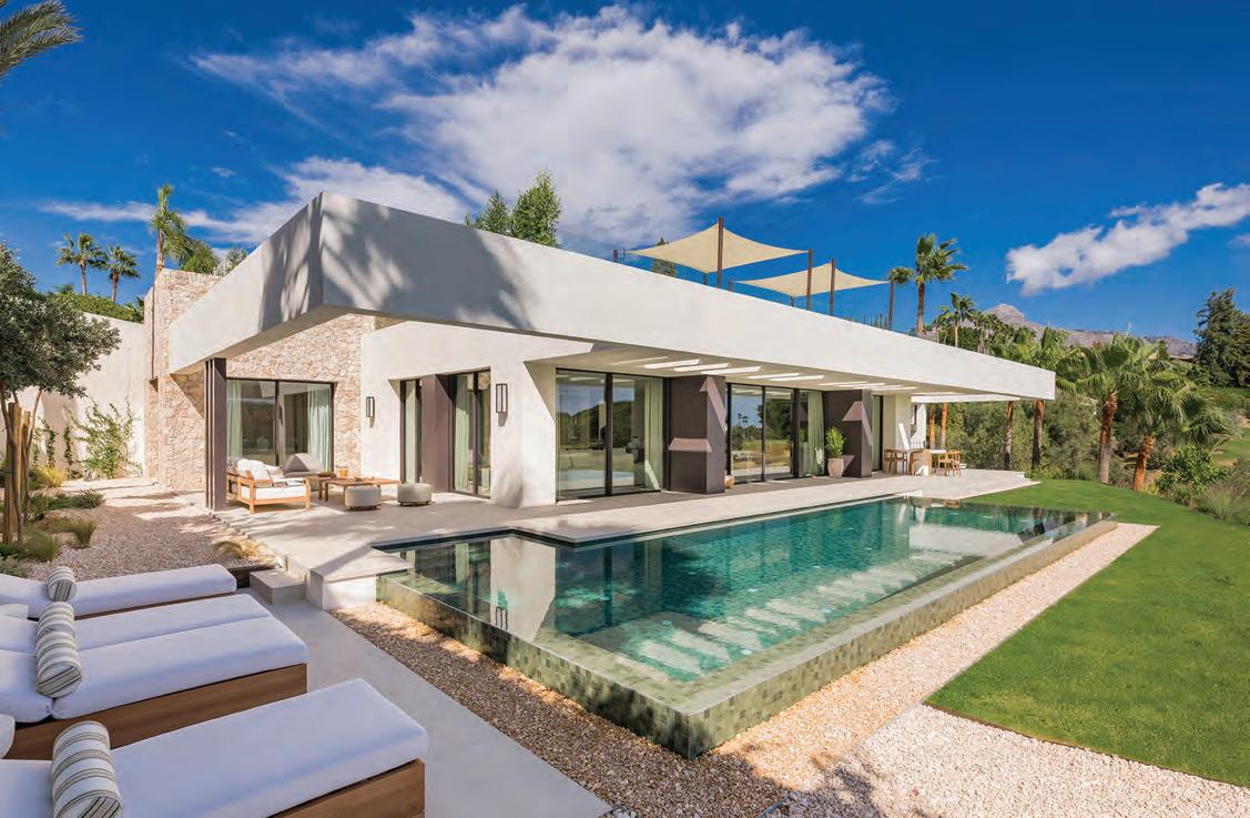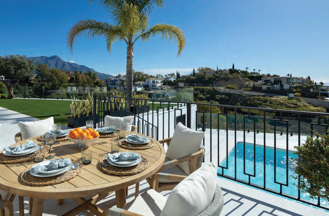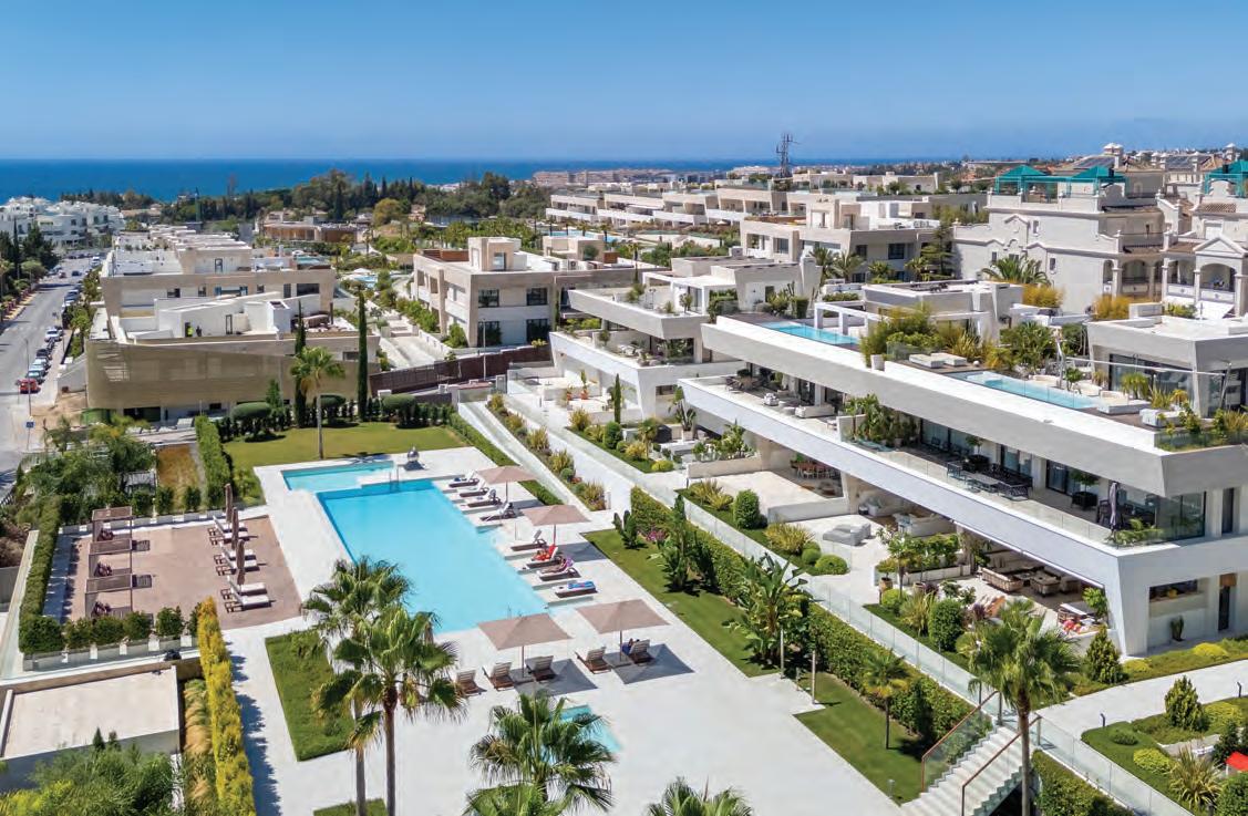 with five bespoke homes that merge sustainable materials with high fashion minimalism.8 In Nueva Andalucía, there are eight Versace Villas, spanning 2,000-squaremetre plots, with opulent design and five-star service.9 Then you have elite launches such as The Summit Marbella byElie Saab in Cascada de Camoján, Lamborghini inspired TerraViva in Benahavís, and lengthy pipelines including Marea by Missoni at Finca Cortesin, Aida furnished by Bentley, around the corner from Puente Romano, the W Resort Marbella by Marriott, which has been upgraded to one of their ultra luxury brands, either a St. Regis or Ritz Carlton10, and Angsana Residences at RealdelaQuinta