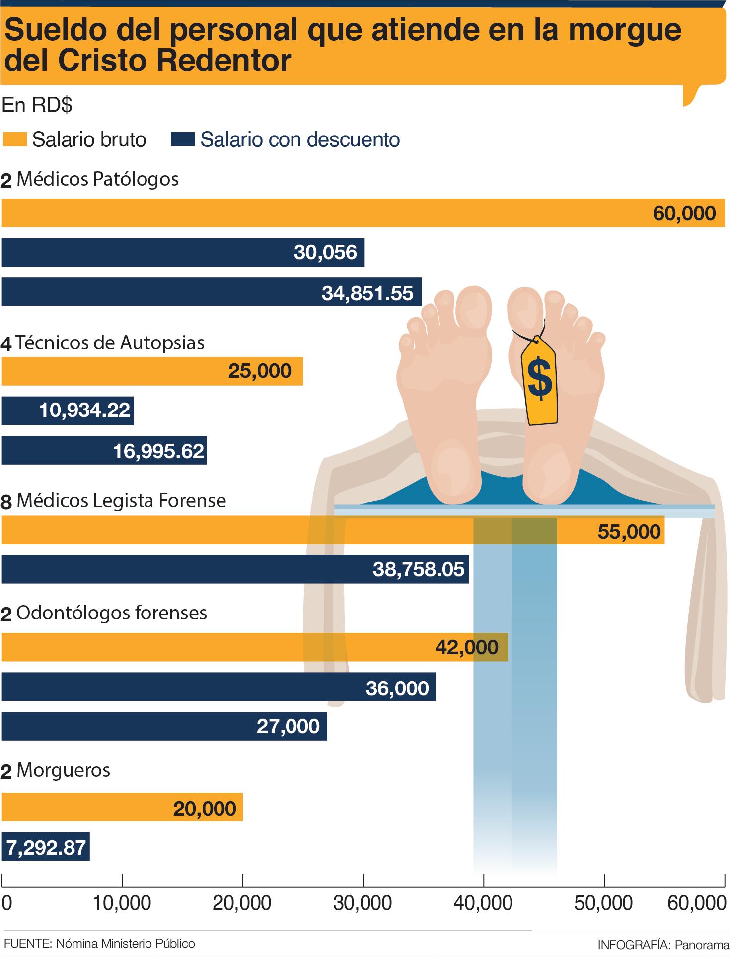 dico legista en República Dominicana, oscila entre RD$27 mil y RD$33 mil sin descuento, mientras los médicos legista forense devengan RD$55 mil sin descuento.