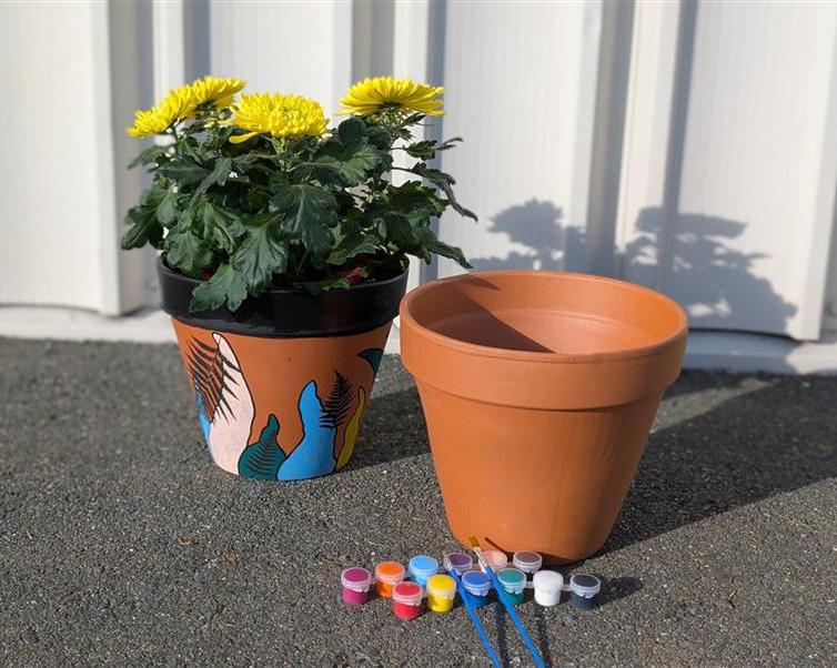 When you return your painted pot for display, we’ll add a plant and base tray before showcasing it in the lobby. At the end of May, take home your completed creation — including the plant and tray!
