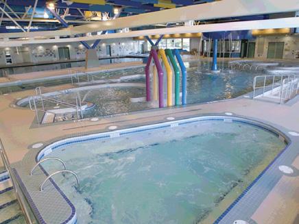 Our aquatic facility includes a 6-lane 25-metre lap/lane pool, multi-use leisure pool, hot tub, sauna, steam room and waterslide.